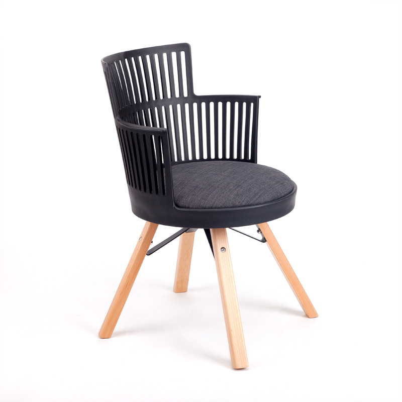 一體成型靠背包裹著背部,棉麻布藝座墊增添椅子的柔軟感。實木腳增添自然元素。椅子設計溫柔又不失穩重。搭配整個會議休閑區效果不同凡響。